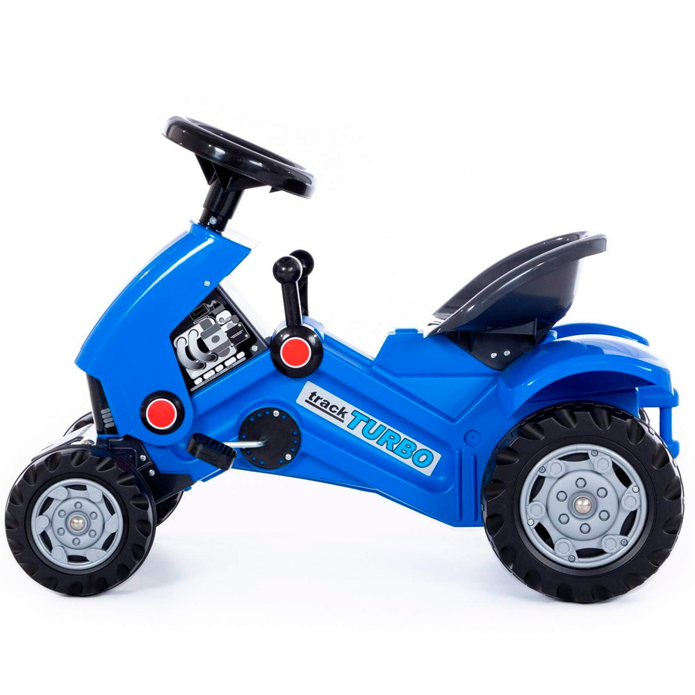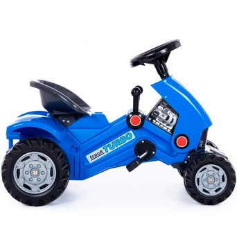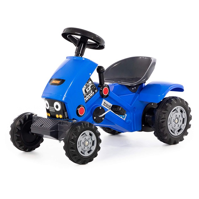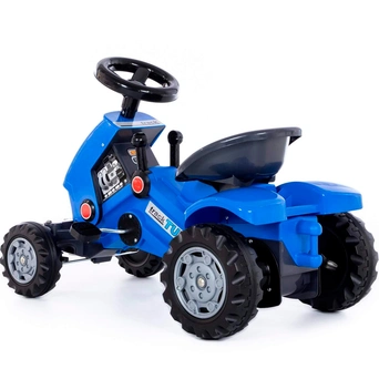 Каталка представляет собой пластиковый толокар в виде яркого трактора с прочным основанием и рулевым управлением. Оснащена музыкальным модулем. Она проста и удобна в управлении: необходимо поворачивать руль и отталкиваться ногами. Прочная пластиковая рама имеет небольшой вес, а широкие колеса гарантируют устойчивость. Такая каталка способствует развитию опорно двигательного аппарата ребенка, укреплению суставов и координации в пространстве. Катание на таком толокаре для ребенка будет одновременно увлекательным и абсолютно безопасным. Четыре широких колеса из пластика делают трактор устойчивым к опрокидыванию, спереди и сзади есть защита от попадания предметов под него. Руль поворачивается на 2 стороны. Трактор-каталка оборудован