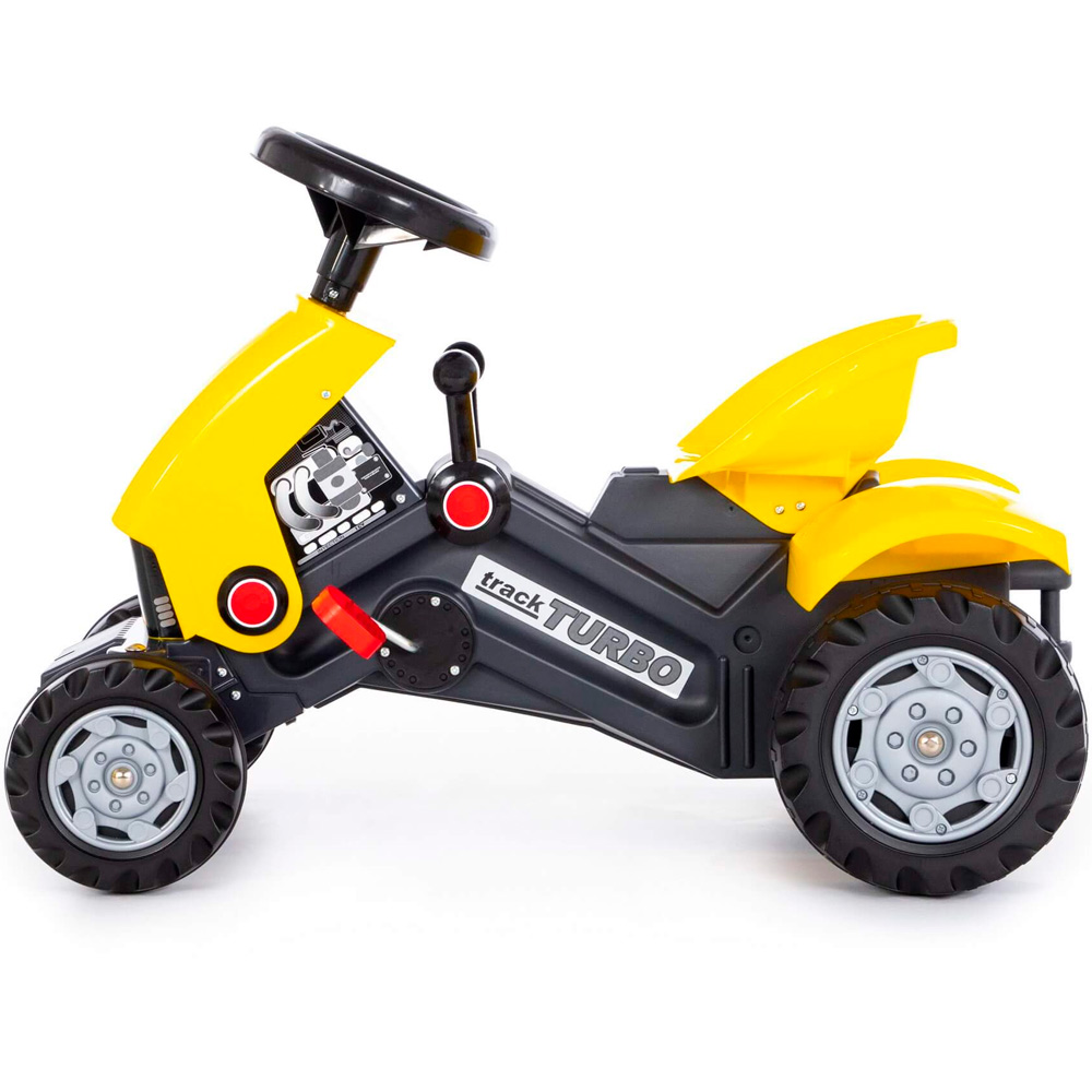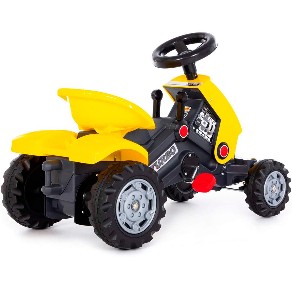 «Полесье» представляет отличную каталку-трактор «Turbo 2». При помощи цепного механизма, каталка приводится в движение. Ребенку нужно только крутить педали. Благодаря рулю ребенок сможет рулить и выбирать направление пути. Рычаги на панели добавляют трактору-каталке еще больше реалистичности, имитируя коробку передач.