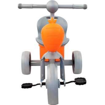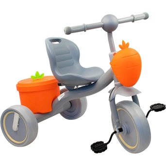 - Безопасность: устойчивая конструкция с тремя колёсами снижает риск падений, а пластиковые педали безопасны для маленьких ножек.