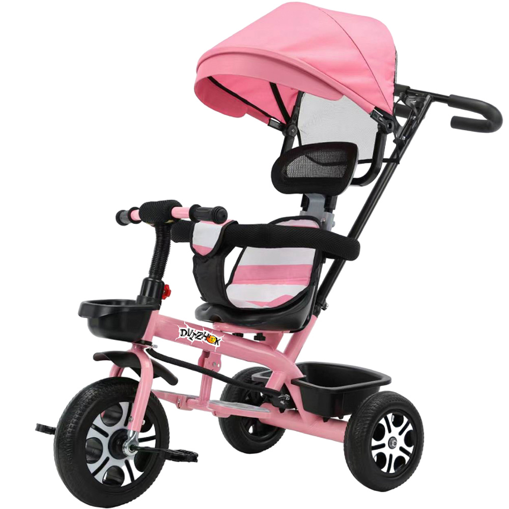 - Безопасность: плотные ручки не скользят, а колёса из EVA обеспечивают плавный ход и хорошее сцепление с дорогой. Складной тент защитит малыша от солнца и ветра, а корзины помогут взять с собой все необходимые вещи.