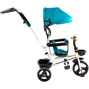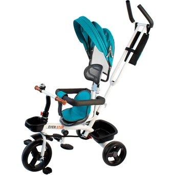 - Удобство для мамы: двойная телескопическая ручка-толкатель регулируется в трёх положениях — вы сможете подобрать оптимальную высоту в зависимости от своего роста. Складной тент защитит малыша от солнца и ветра, а две корзины и сумка позволят взять с собой все необходимые вещи.