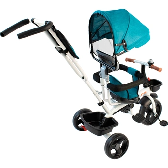 - Комплектация: велосипед, родительская ручка, крыло, складной тент, корзина (2 шт.), сумка, подставка для ног, велосипедный звонок