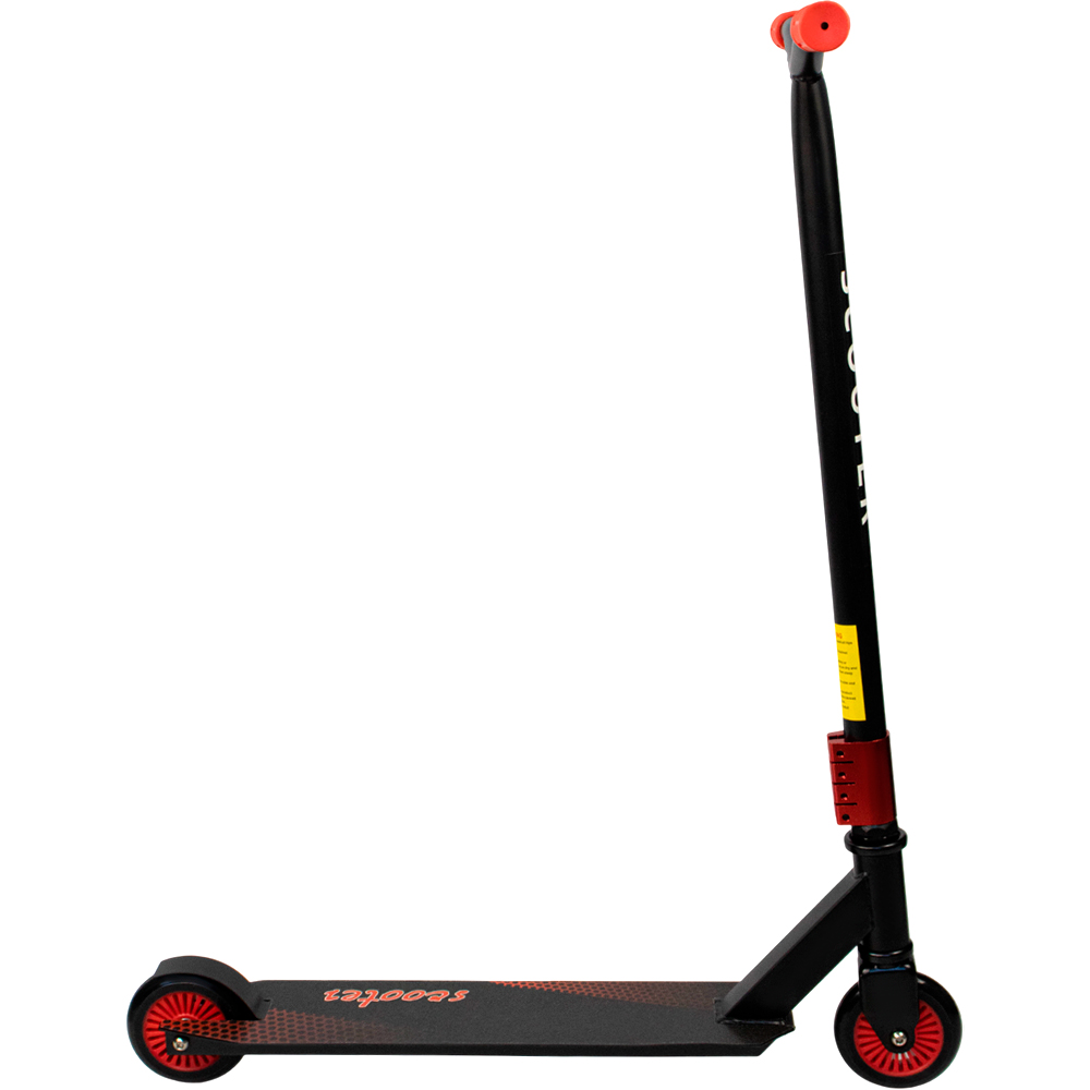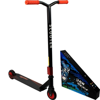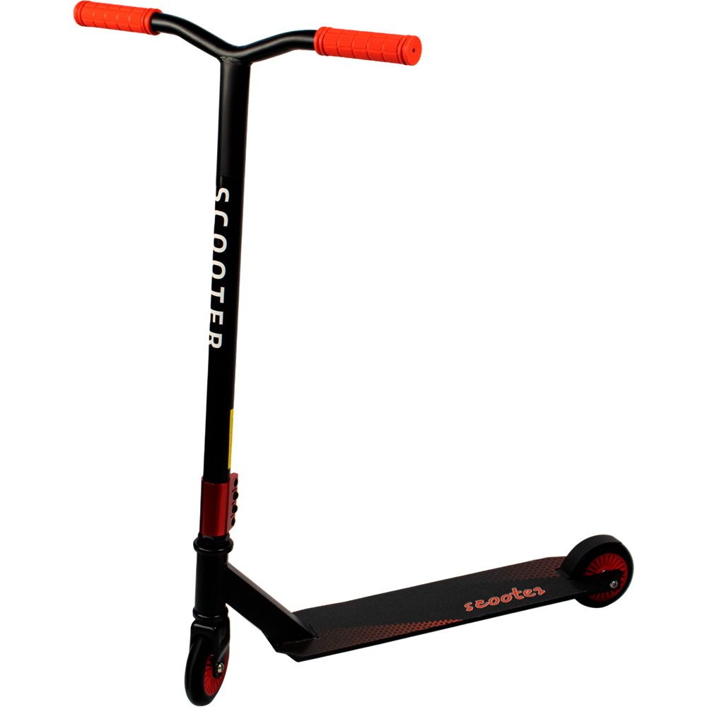 Стильный двухколёсный самокат с трюковыми колёсами.