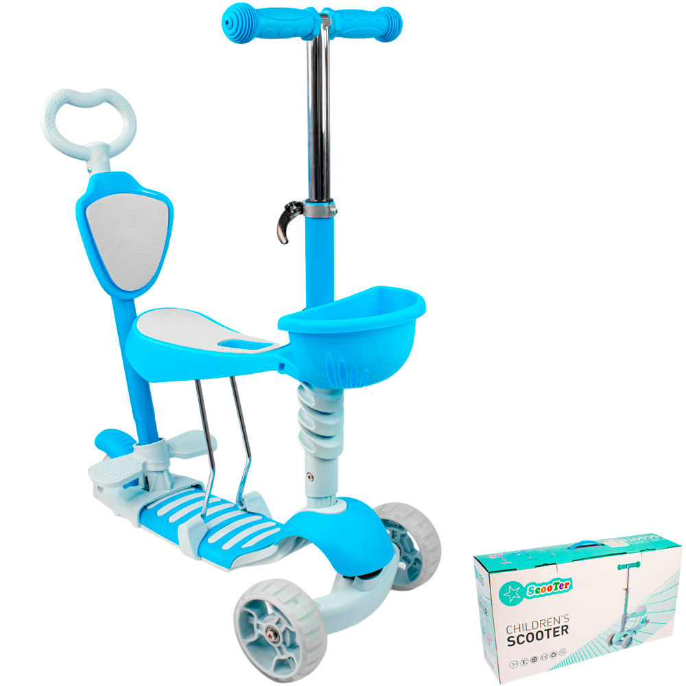 - Комплектация: дека, руль, корзина, сидение, спинка сидения, подставка, родительская ручка, подножка, крепления