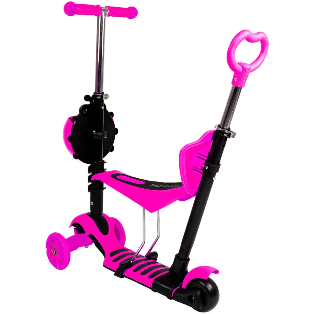 - Комплектация: дека, руль, корзина, сидение, спинка сидения, подставка, родительская ручка, крепления
