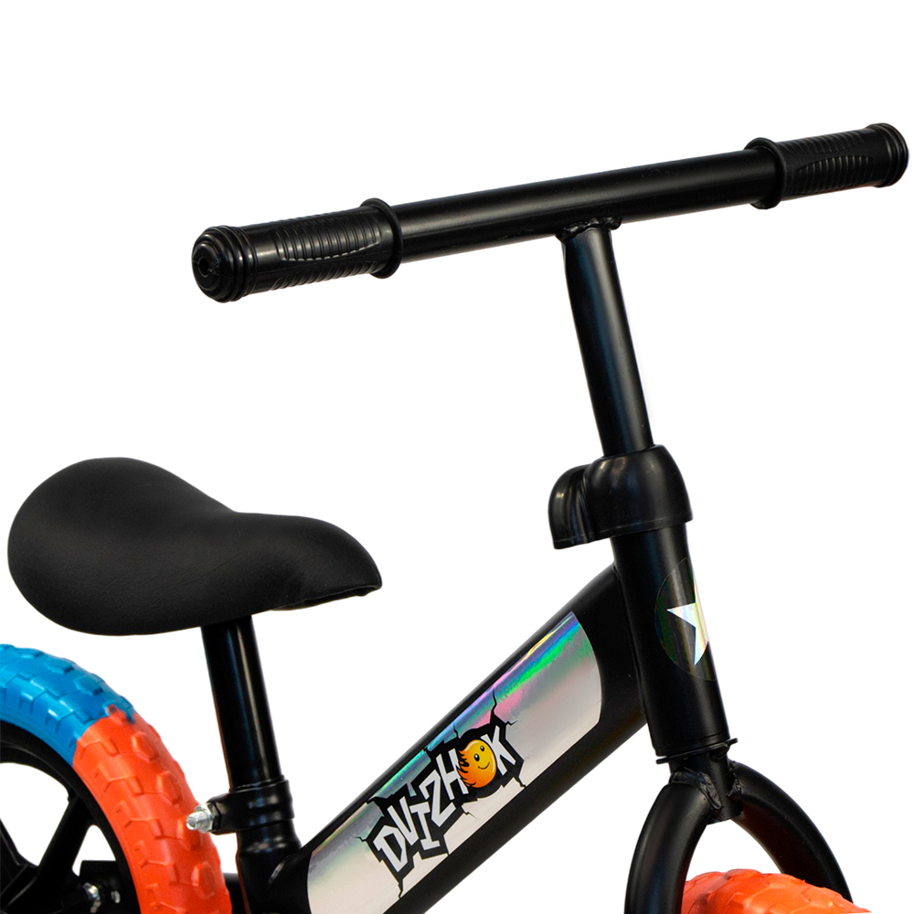 Комфорт и безопасность: сиденье из ПВХ и колёса обеспечивают плавный ход, а регулируемые высота сиденья и руля позволяют настроить беговел под рост ребёнка.