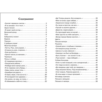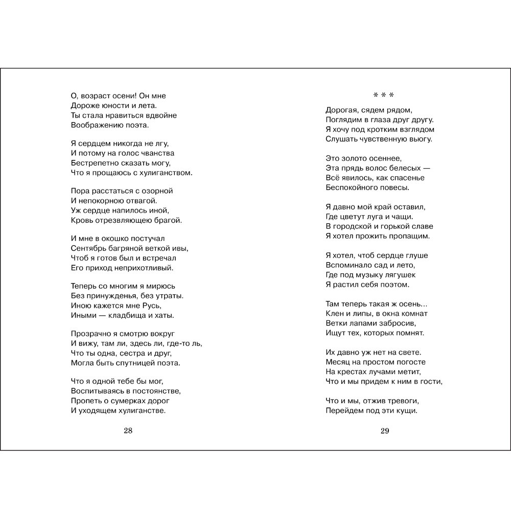 В сборник вошли произведения великого русского поэта Сергея Александровича Есенина: лирические стихотворения, воспевающие красоту русской природы, народный русский колорит, хулиганские и философские стихи о русской душе, о судьбе России.
