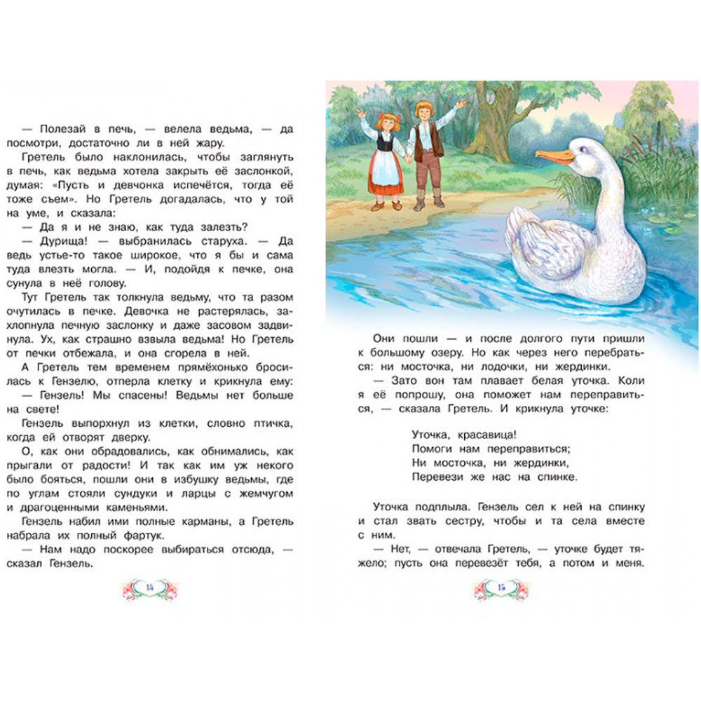 Поучительная история Братьев Гримм о юных брате и сестре, попавших в ловушку к ведьме. Сказка учит, что если действовать сообща и не терять присутствия духа можно найти выход из любой ситуации.