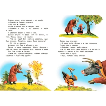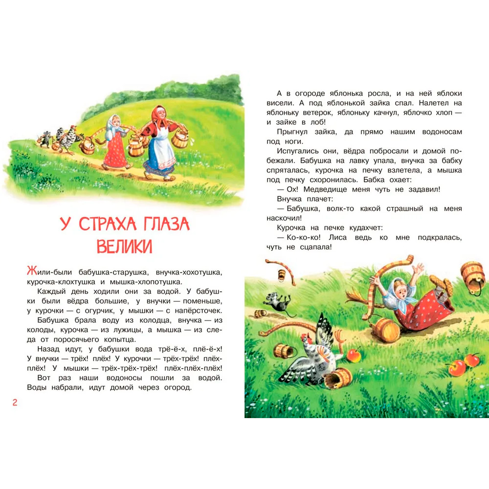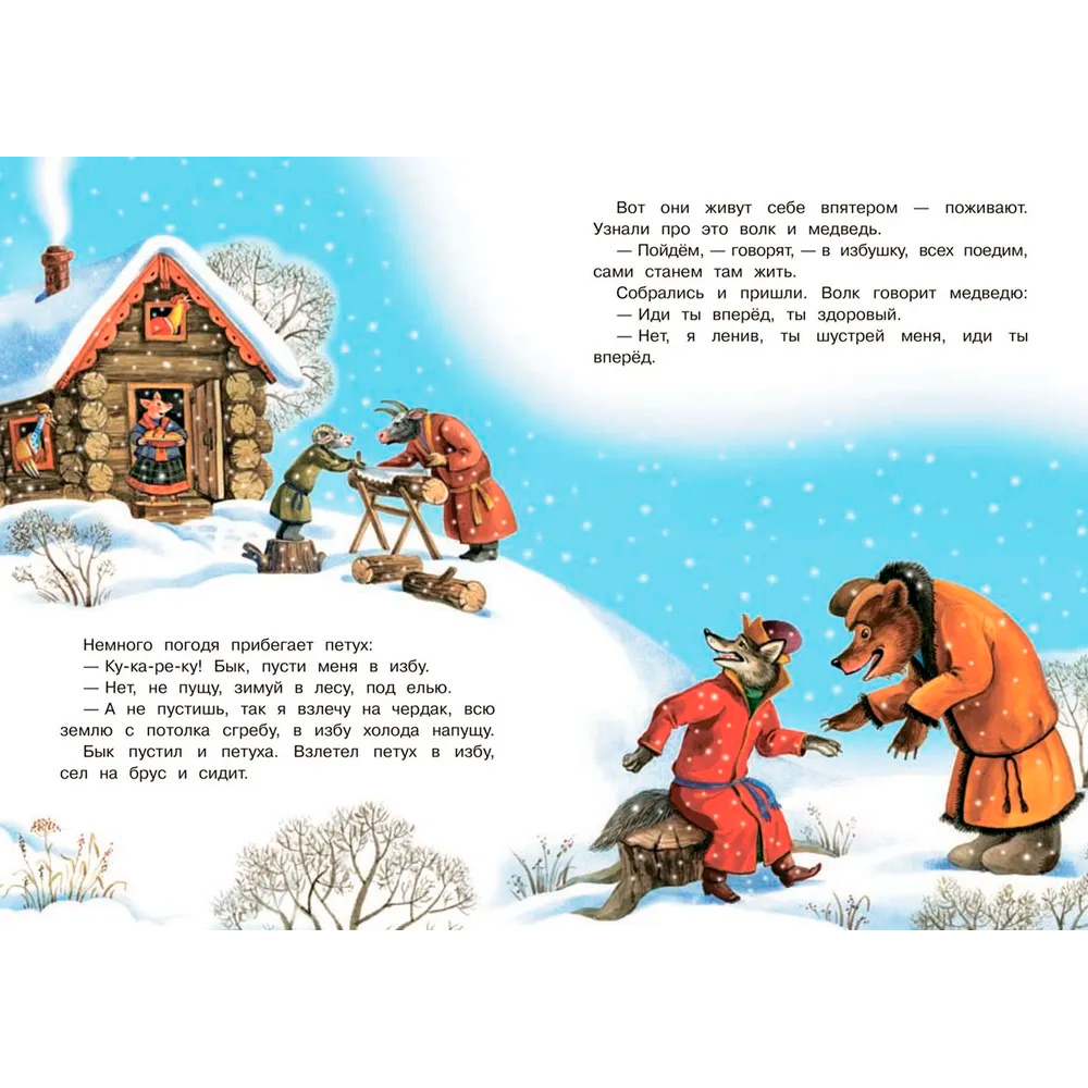 В сборник вошли две русские народные сказки – «У страха глаза велики» в обработке М. Серовой и «Зимовье зверей» в обработке А. Толстого.