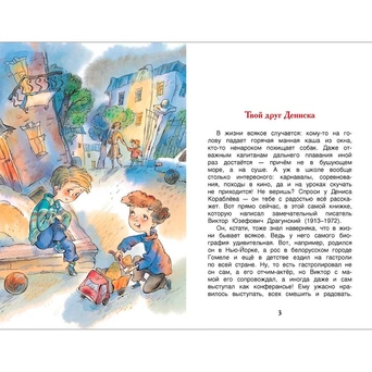 "Денискины рассказы" - забавные истории о мальчике Денисе Кораблёве, шаловливом, сообразительном выдумщике, и его закадычном друге - Мише Слонове. Они посвящены случаям из жизни мальчиков и стали классикой отечественной детской литературы. Действие рассказов происходит в конце 1950-х годов — начале 1960-х годов в Москве.