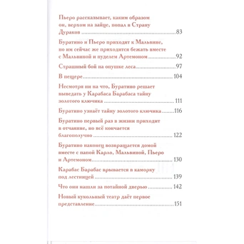 В это издание включена сказочная повесть "Золотой ключик, или Приключения Буратино", которая поведает историю о деревянном озорнике и его невероятных приключениях. Издание снабжено красочными иллюстрациями, которые сделают процесс чтения еще более интересным и увлекательным. Чтение способствует развитию образного мышления и фантазии, побуждает к действиям, учить этикету и дает первые базовые понятия и сведения об окружающем мире.