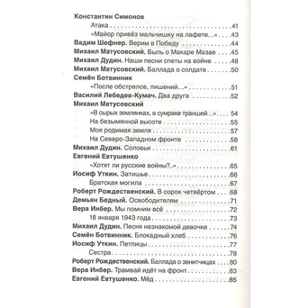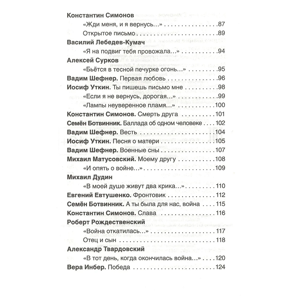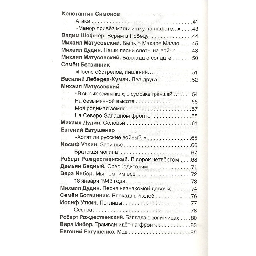 Замечательная книга «Стихи о войне и победе» предназначена для внеклассного чтения для школьников. В книгу собраны произведения русских поэтов: Анны Ахматовой, Константина Симонова, Роберта Рождественского, Евгения Евтушенко – о трудном военном времени, подвигах, сражениях и о Великой Победе.