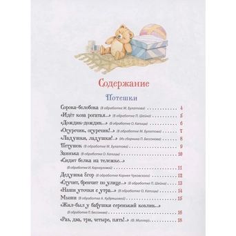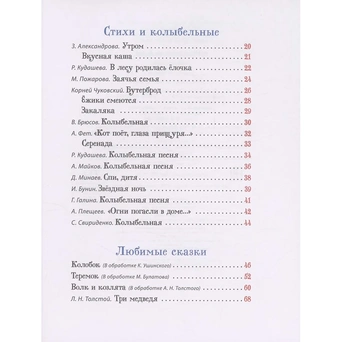В сборник вошли народные потешки, любимые русские народные сказки, колыбельные песенки, стихи лучших русских поэтов.