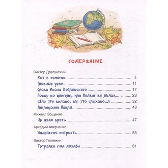 В книгу вошли забавные и увлекательные рассказы-зарисовки о жизни школьников М. Зощенко, В. Драгунского, В. Голявкина и др.