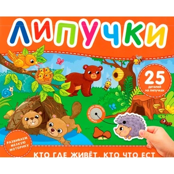 Книга 978-5-353-11337-9 Кто где живет, кто что ест. Книга с липучками