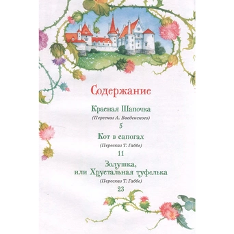 В сборник вошли известные волшебные сказки знаменитого французского писателя Ш. Перро: «Красная Шапочка», «Кот в сапогах», «Золушка, или Хрустальная туфелька», «Спящая красавица» и другие.