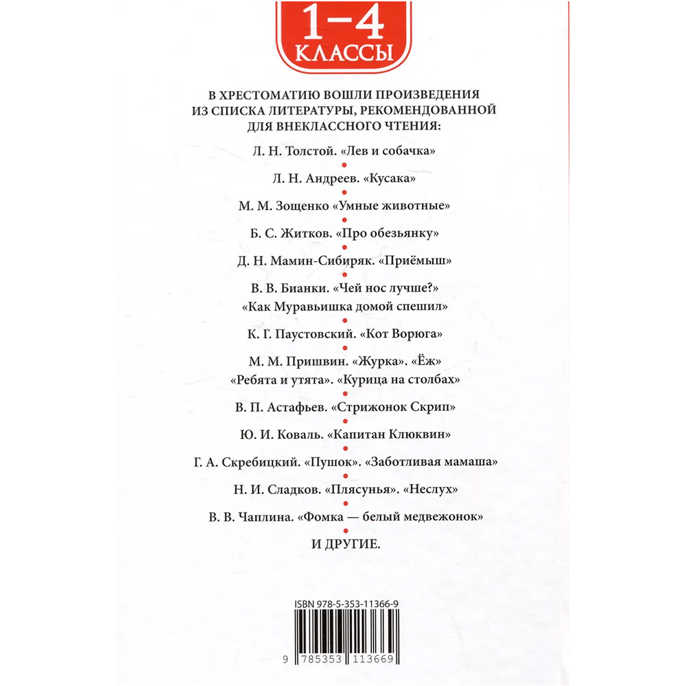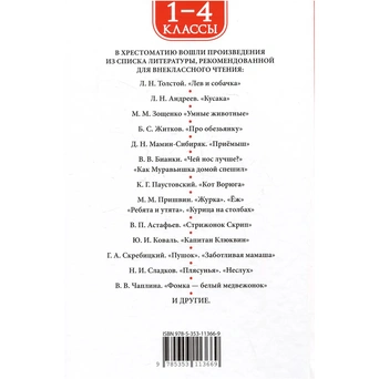 В хрестоматию для 1-4-х классов вошли истории об удивительных и таких разных животных и птицах от известных детских писателей, которые изучают в рамках большинства школьных программ.