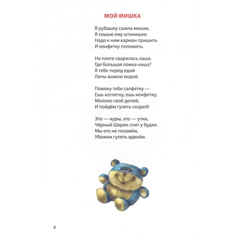 Это красочное издание представляет собой сборник замечательных стихов Зинаиди Александровой для малышей. Яркие цветные иллюстрации сделают процесс чтения более веселым и увлекательным. Стихотворения - прекрасные произведения, славящиеся образным рядом, богатым языком и запоминающимися картинами. Дети любят стихи, ведь это и уроки доброты, милосердия, справедливости. Они учат детей проявлять житейскую мудрость, отличать добро от зла и помогут формировать другие положительные качества. Читать книги детям полезно с самого раннего возраста. Это стимулирует их воображение, позволяет успокоить и разнообразить досуг.