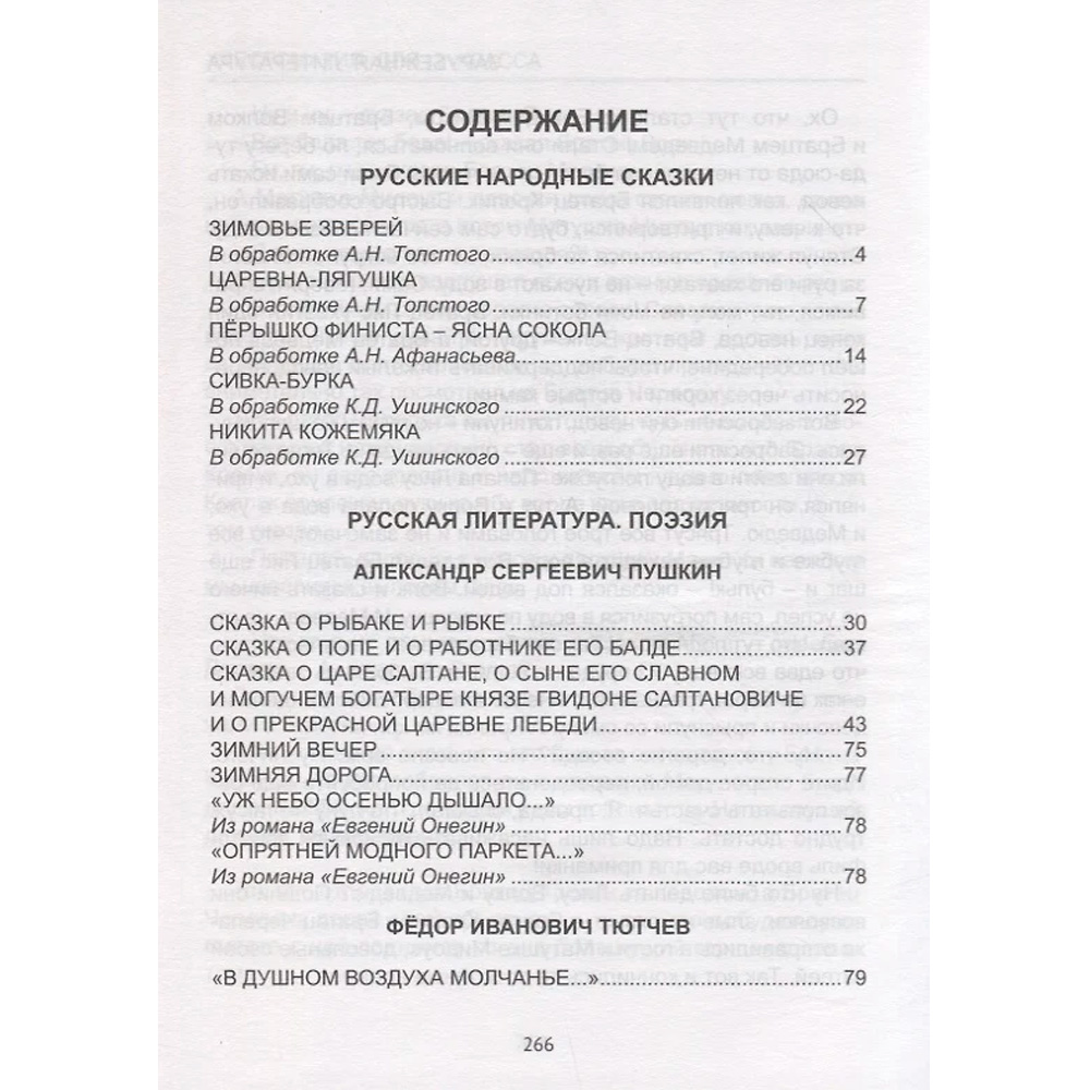 Хрестоматия для 2 класса состоит из четырёх разделов и включает в себя произведения русской народной литературы, прозу и поэзию русских классиков, а также сказки зарубежных авторов, которые изучают в рамках большинства школьных программ.