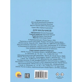 Книга 978-5-378-34865-7 МОИ ПЕРВЫЕ ВЫРЕЗАЛКИ. ДЛЯ МАЛЬЧИКОВ