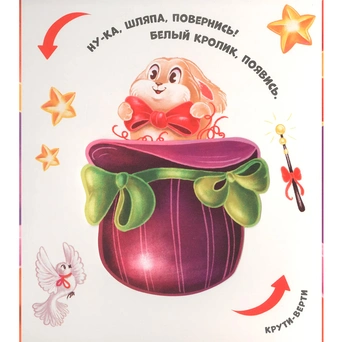- на каждом развороте — добрый стишок и вращающийся элемент