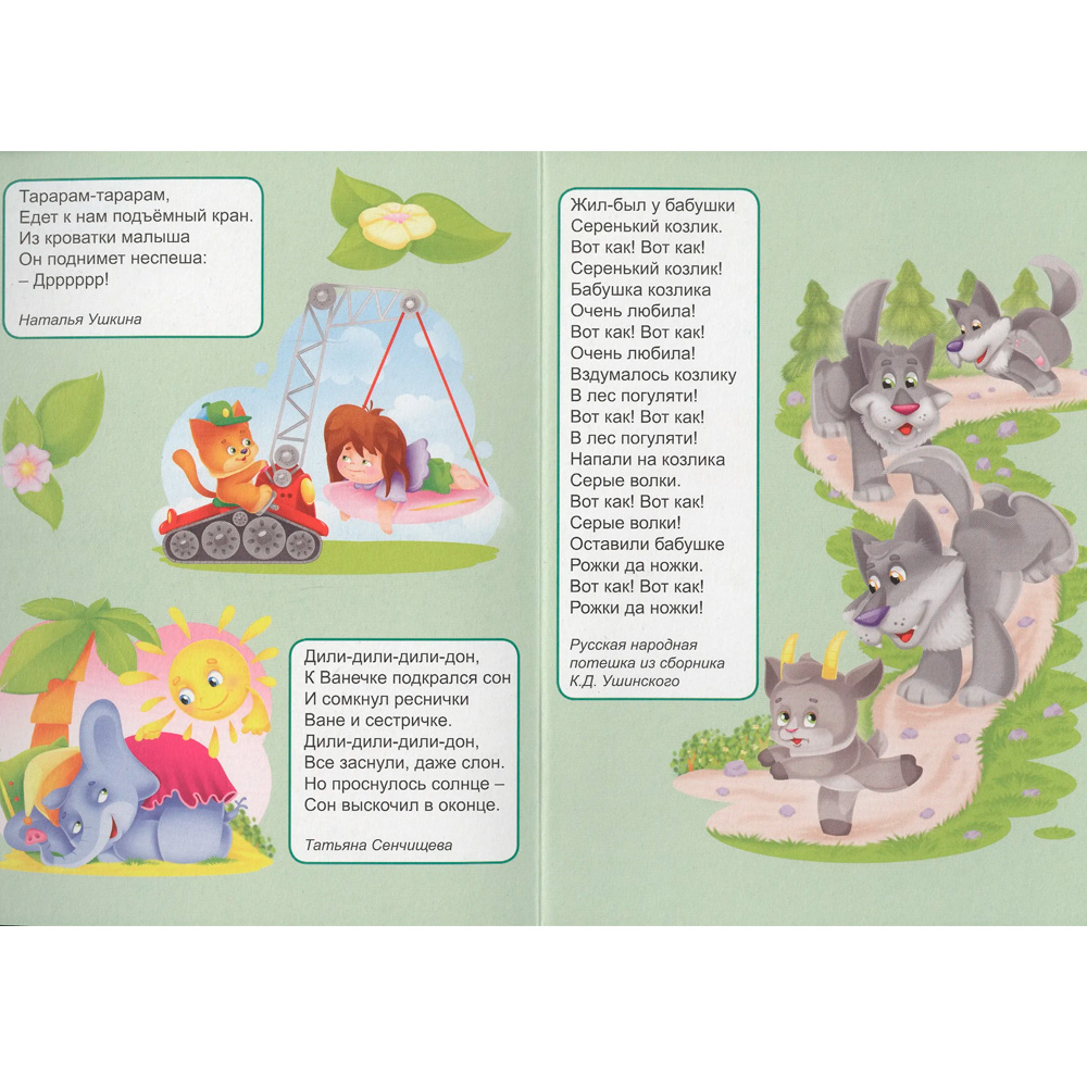 Ярко проиллюстрированная книжка-картонка содержит весёлые и познавательные потешки для малышей.