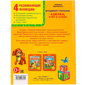 Книга "Азбука. Счет и стихи" является отличным пособием, которое рекомендовано логопедами и педагогами для первого знакомства с алфавитом и счетом. Книга в доступной форме преподносит информацию о цифрах и счете, буквах и слогах, приводятся примеры слов. К каждой букве есть цветные красочные иллюстрации, чтобы ребенку было легче их запоминать. Красивые яркие иллюстрации не только создадут ассоциативный образ и покажут ребенку буквы на конкретных примерах, но и позволят отдохнуть от первой учебы, наслаждаясь просмотром забавных картинок.