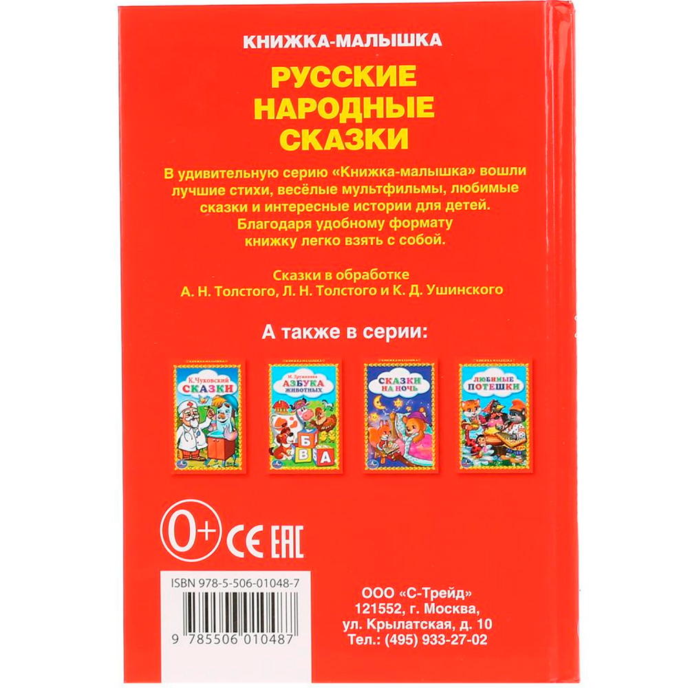 "Русские народные сказки" из серии "Книжка-малышка" - это прекрасный подарок юным любителям чтения. Красочные иллюстрации дополнят эти удивительные истории и создадут атмосферу волшебства.