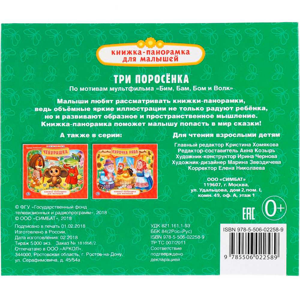 Книжка-панорамка для малышей «Три поросёнка» ТМ «УМка» 5 в 1: