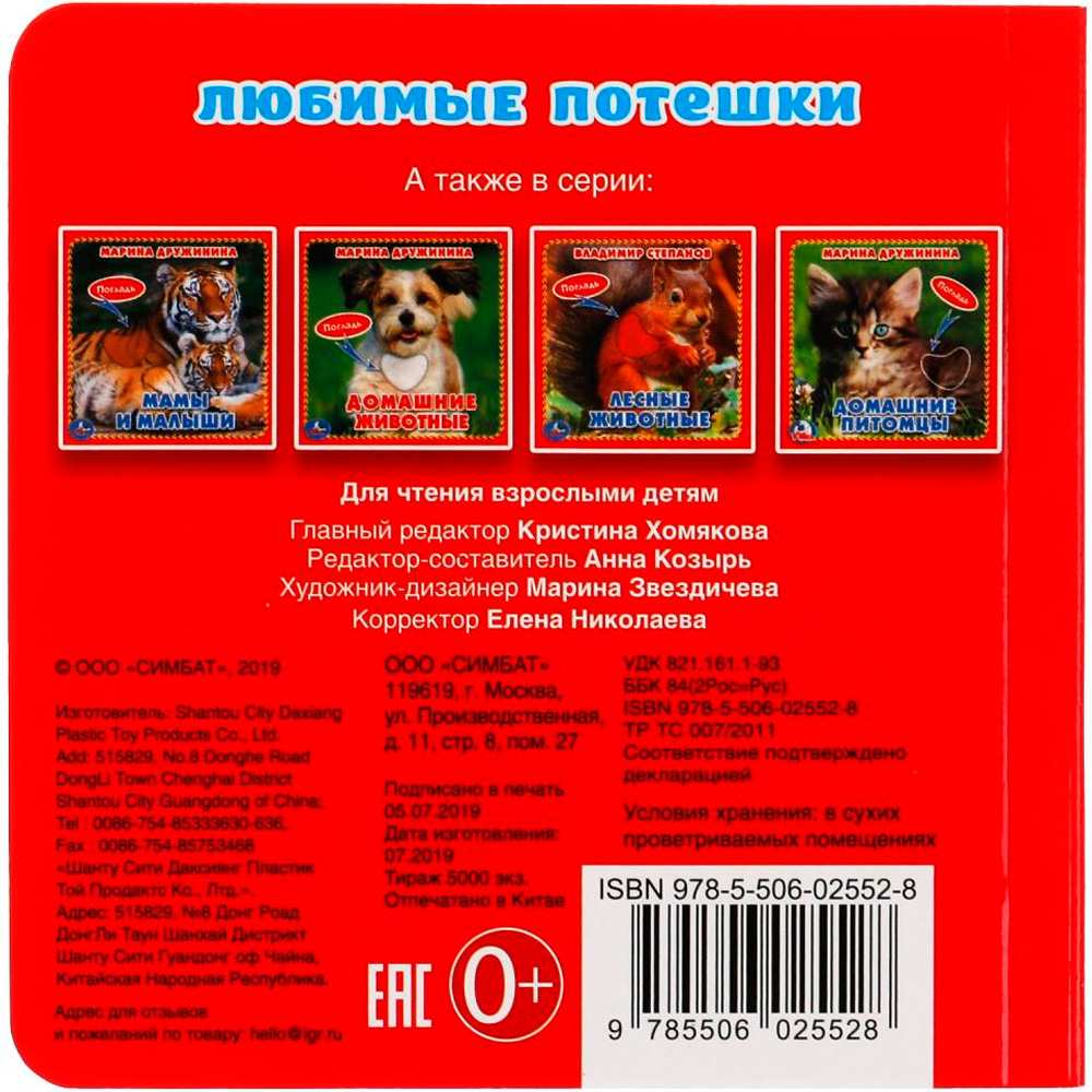 Книжка-картонка с красочными картинками содержит веселые потешки для самых маленьких. Издание плотное, картонное. Книга снабжена красочными иллюстрациями, которые помогут малышу во время чтения визуализировать сюжет. Читать книги детям полезно с самого раннего возраста. Это стимулирует их воображение, позволяет успокоить и разнообразить досуг. Для чтения детям родителями.