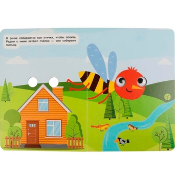 Ребёнок переворачивает страницы, и у каждого героя "появляются" глазки.