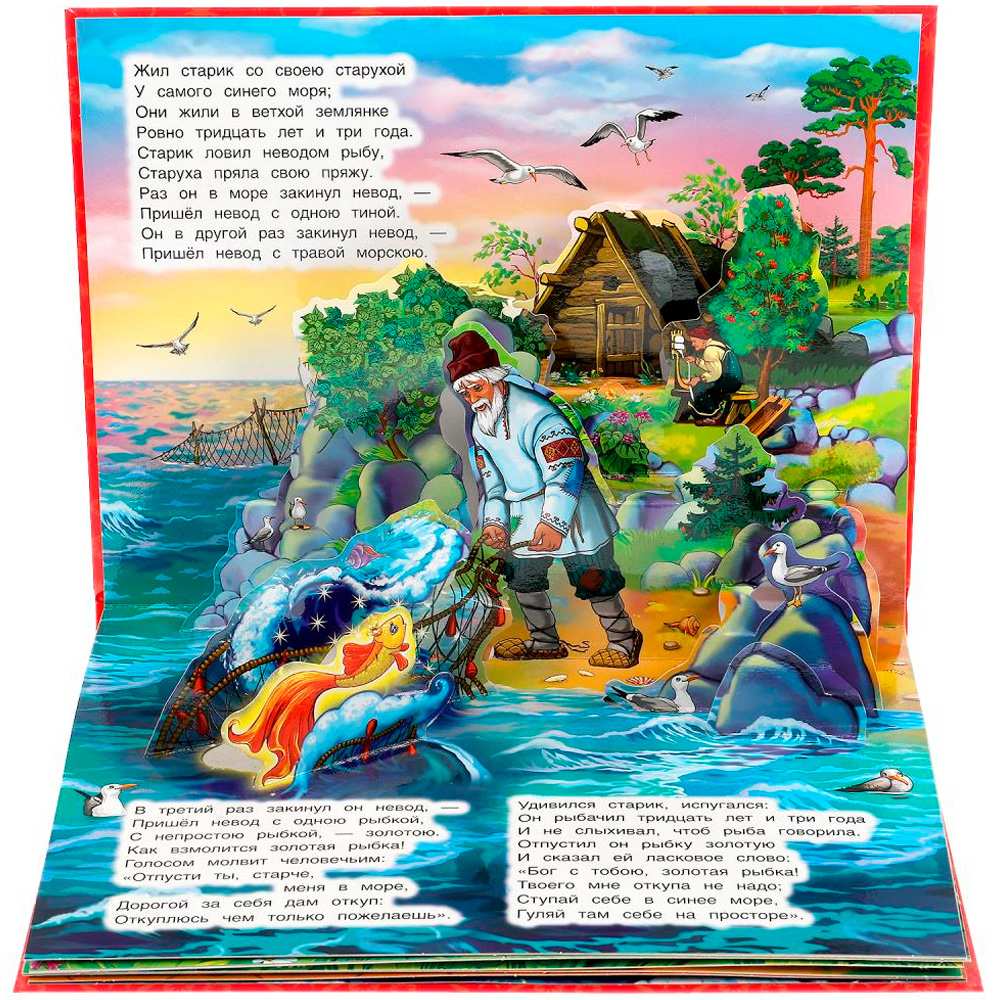 Всеми знакомая и любимая детская книга А. С. Пушкина «Сказка о рыбаке и рыбке» обязательно понравится и заинтересует любознательного малыша. Он с огромным удовольствием будет разглядывать красочные и объемные иллюстрации и слушать прекрасную сказку. В процессе чтения книжки у ребенка развивается внимательность, память, словарный запас, тактильные ощущения и образное мышление.