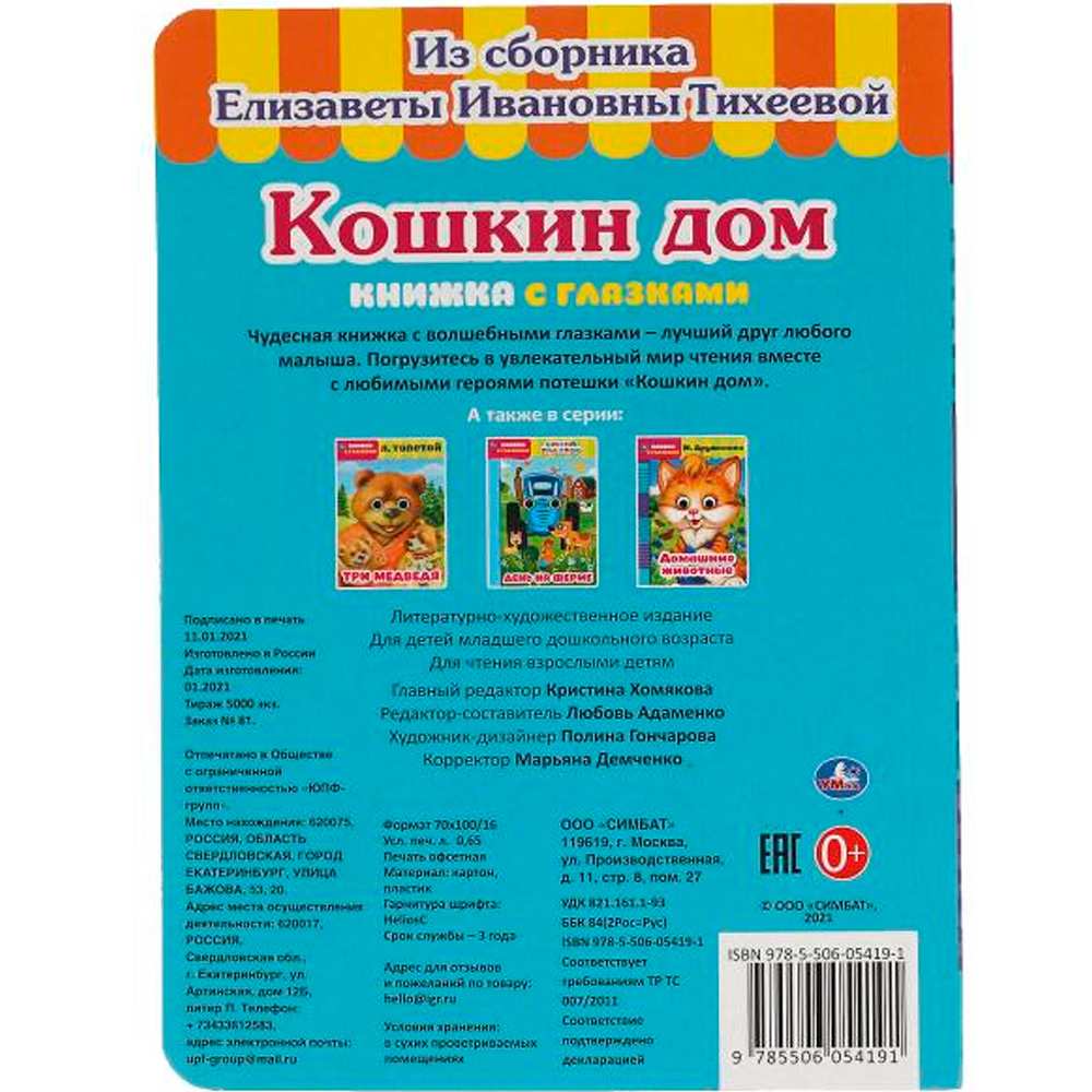 Забавная книжка с глазками «Кошкин дом» от ТМ «УМка» привлечёт внимание маленького любознайки.