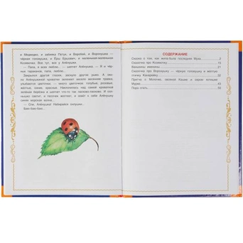 • В сборник вошли известные и увлекательные сказки: "Сказка о том, как жила-была последняя Муха", "Сказочка про Козявочку", "Ванькины именины", "Сказка про Воронушку - чёрную головушку и жёлтую птичку Канарейку", "Притча о Молочке, овсяной Кашке и сером котишке Мурке", "Пора спать".