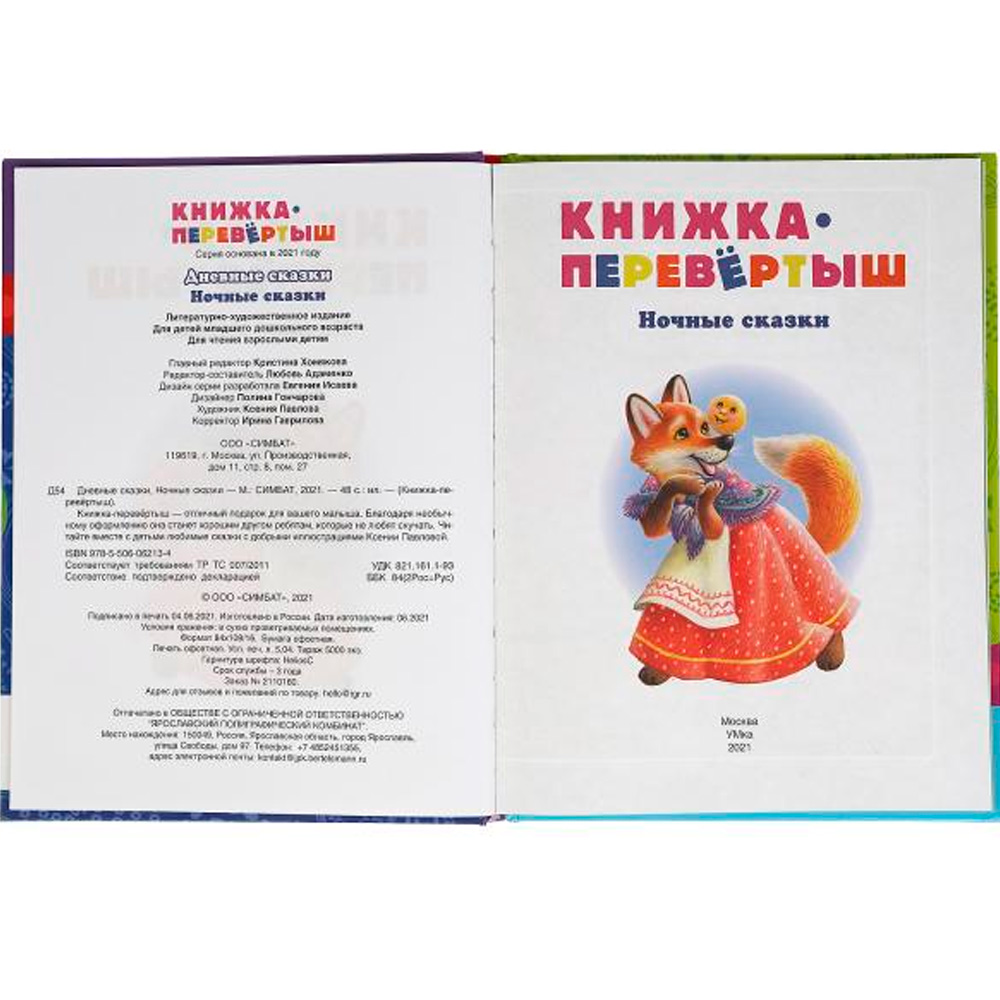 Книга-перевёртыш 2 в 1 «Ночные сказки» познакомит детей с занимательными сказками известных писателей! Малыши с большим интересом вместе с родителями будут листать странички, разглядывать красочные иллюстрации и слушать веселые сказочные истории.