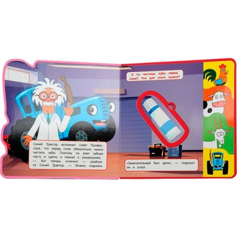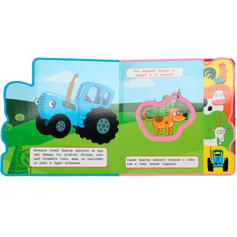 Книжка с закладками расскажет ребенку о приключениях Синего трактора.