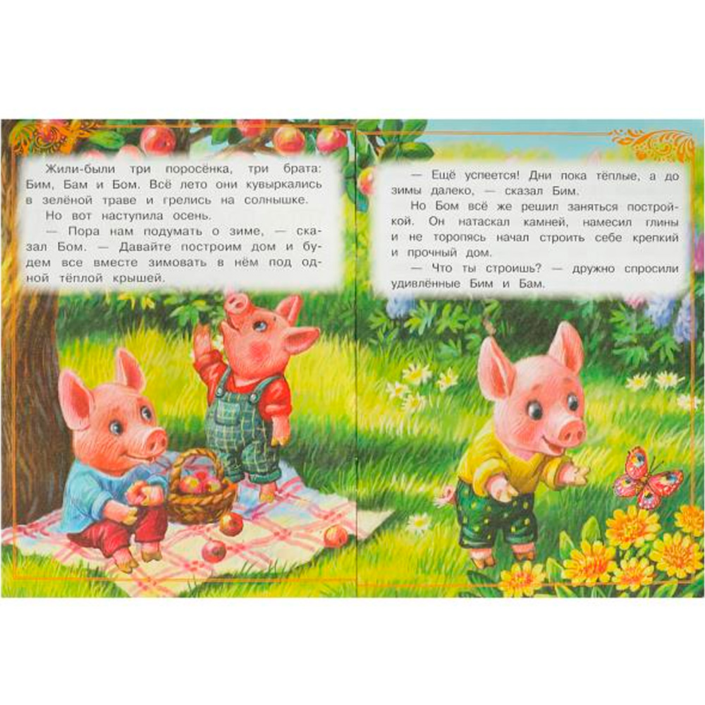 В сборник вошла известная и поучительная народная сказка о трех братьях-поросятах и хитром сером волке.