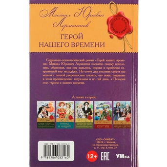 В книгу серии "Библиотека классики" вошел роман М. Ю. Лермонтова "Герой нашего времени".