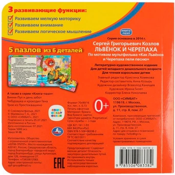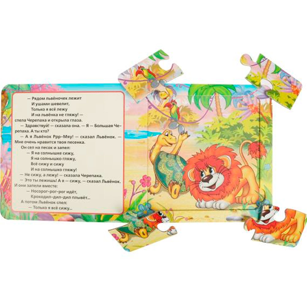 Ярко проиллюстрированная книжка-картонка с милыми иллюстрациями содержит занимательную сказку и пазлы, которые необходимо собрать, чтобы получилась цельная картинка.
