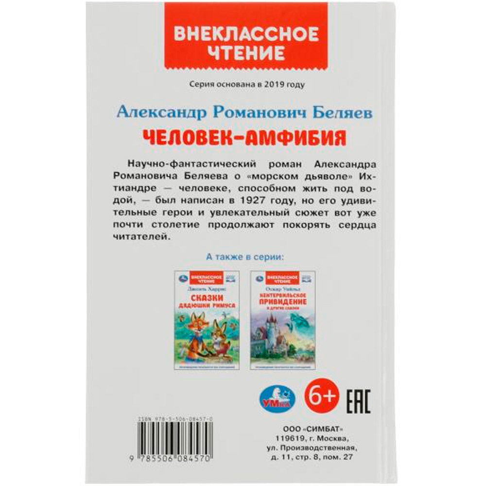 В книгу серии "Внеклассное чтение" вошла научно-фантастический роман Александра Беляева о необычном человеке, который в результате эксперимента получил способность жить под водой.