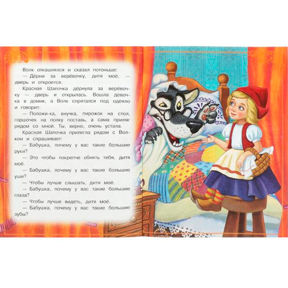 В издании представлена известная сказка о доверчивой Красной Шапочке и хитрой волке.