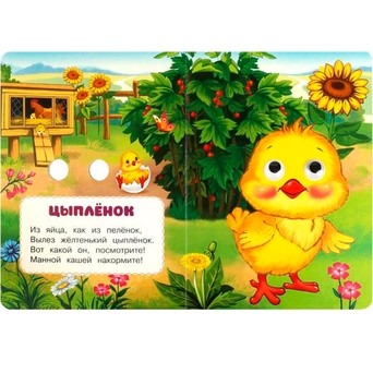 Ребёнок переворачивает страницы, и у каждого героя "появляются" глазки.