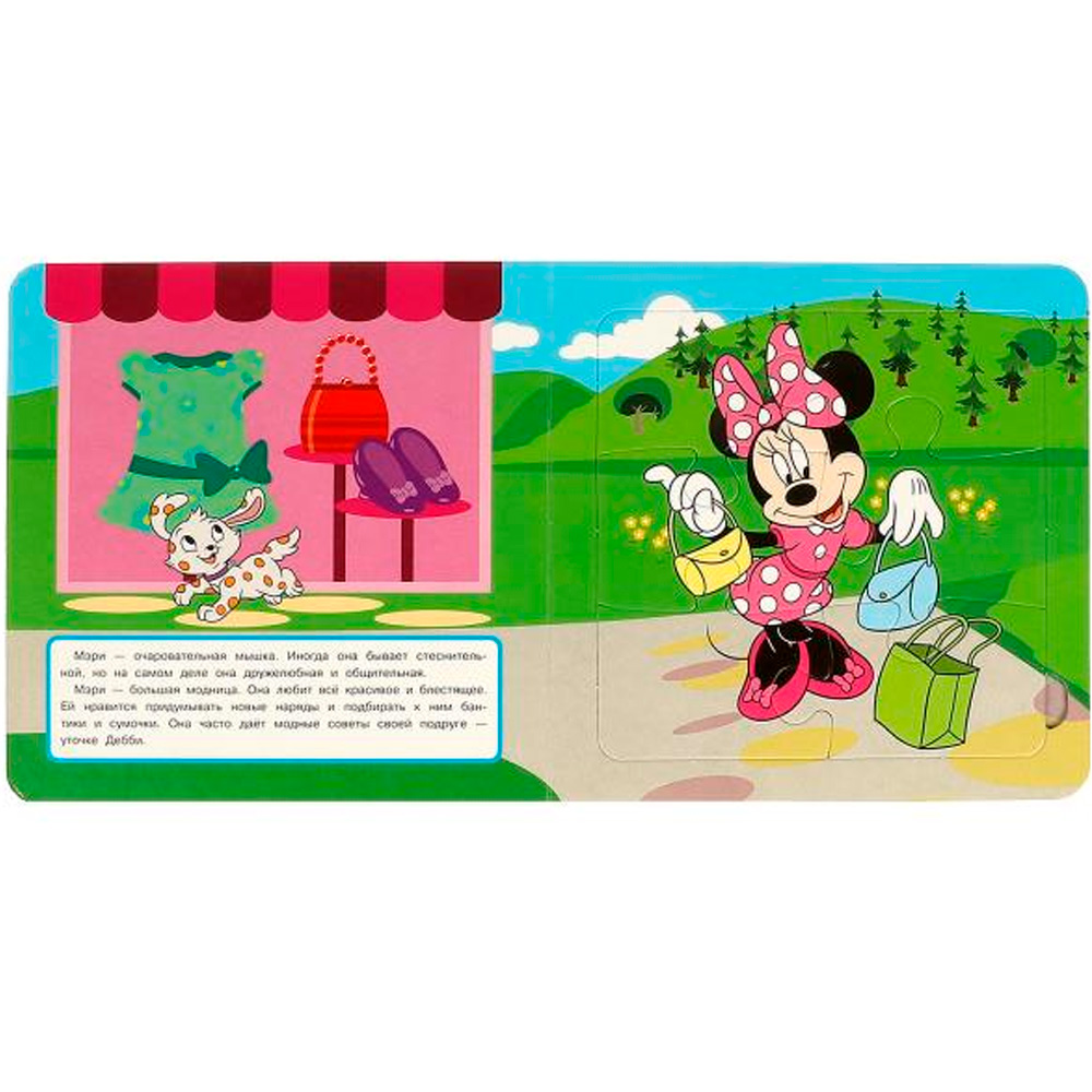 Ярко проиллюстрированная книжка-картонка с милыми иллюстрациями содержит занимательные истории и пазлы, которые необходимо собрать, чтобы получилась цельная картинка.