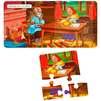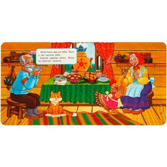 Ярко проиллюстрированная книжка-картонка с милыми иллюстрациями содержит народную сказку и пазлы, которые необходимо собрать, чтобы получилась цельная картинка.