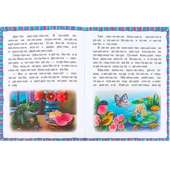 - красочные иллюстрации помогут малышу с удовольствием включиться в процесс чтения;