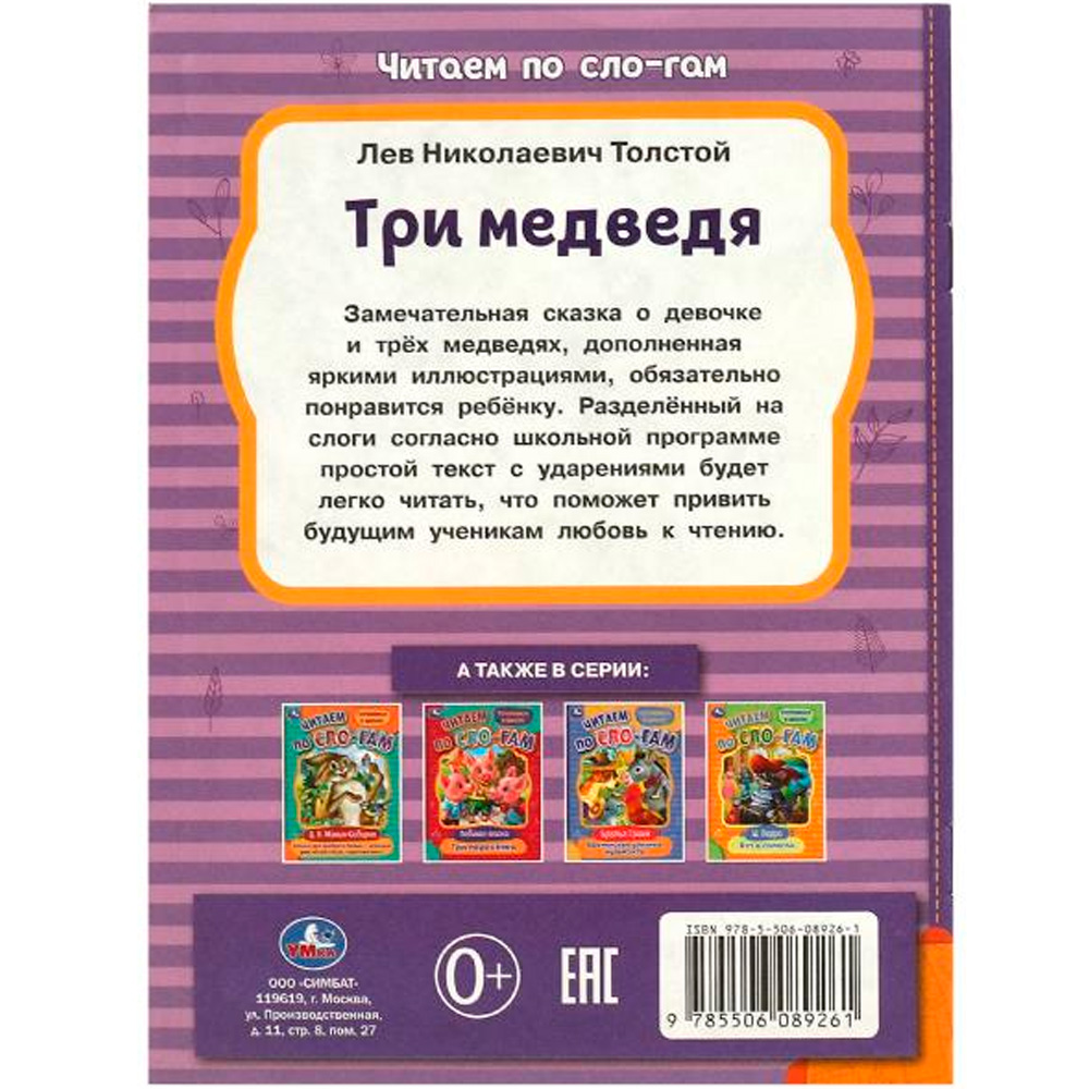 Брошюра «Три медведя» из серии «Читаем по слогам» ТМ «УМка» - отличный вариант для первого самостоятельного чтения и подготовки к школе.