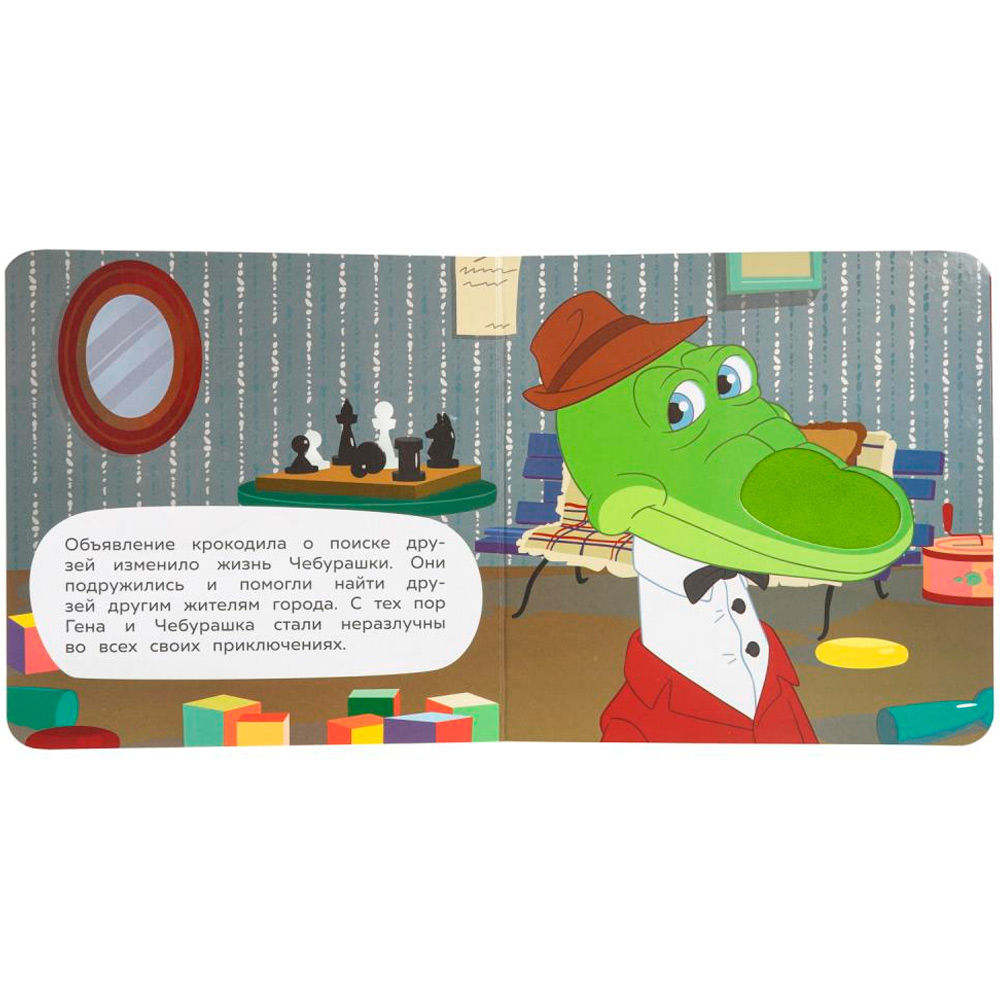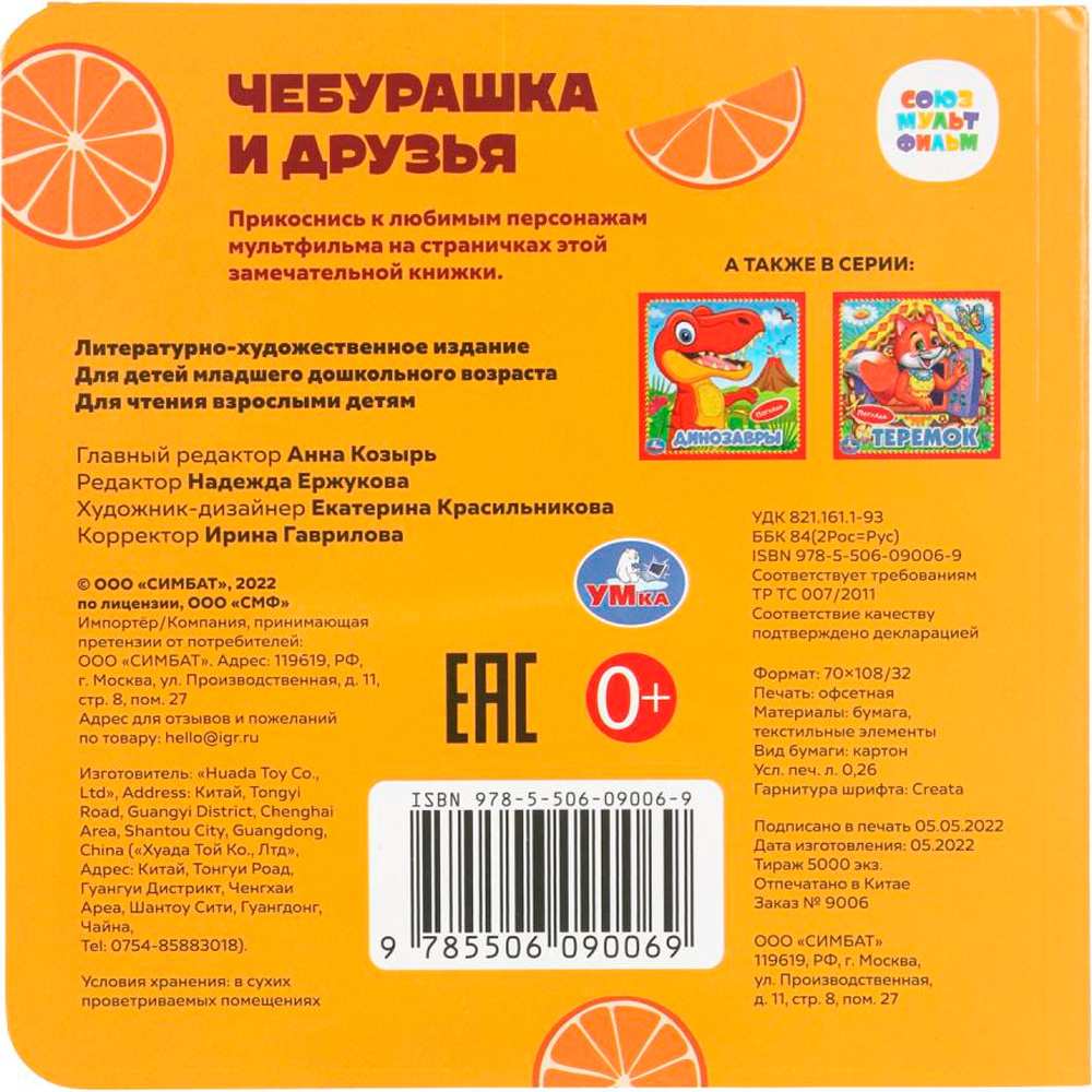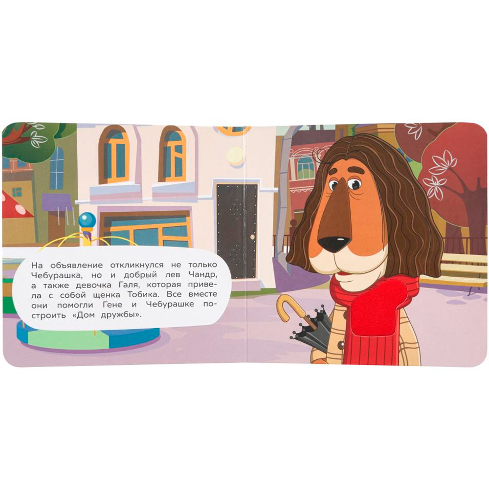 Картонная книга с тактильными элементами «Чебурашка» ТМ «УМка» станет прекрасным подарком для маленького поклонника мультфильмов студии «Союзмультфильм»