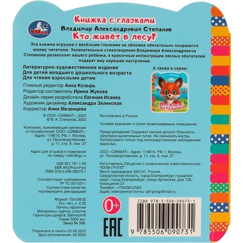 На каждой странице у героев на месте глаз - прорези, на последней странице - пластиковые глазки с подвижными зрачками.
