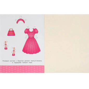 - нужно вырезать куклу и наряды для нее, а потом куклу можно наряжать - одежда крепится при помощи специальных держателей;
