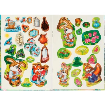 Малыш сможет сам поучаствовать в сюжете при помощи цветных наклеек.